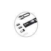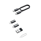کمپانی بیوا با تولید لوازم جانبی با کیفیت و قابل اعتماد برای گوشی های هوشمند، تبلت ها، لپ تاپ ها و سایر دستگاه های الکترونیکی، نام خود را در این صنعت پررنگ کرده است. انواع کابل، هدفون های بی سیم و هندزفری، شارژرهای سریع، پاوربانک های و با ظرفیت بالا و بسیاری از محصولات دیگر در بین محصولات برند بیوا دیده می شود که با طراحی زیبا و امکانات منحصر به فرد، تجربه ای لذت بخش و راحت را برای کاربران فراهم می کنند. کابل شارژر یکی از پرکاربرد ترین لوازم جانبی گوشی موبایل است. استفاده زیاد از کابل شارژ باعث می شود که این کابل ها در معرض آسیب و خرابی بیشتری قرار بگیرند. در بازار شاهد انواع مختلفی از کابل شارژ هستیم. دقت در انتخاب کابل شارژ بسیار مهم است. چرا که خرید یک کابل شارژ بی کیفیت و نامرغوب باعث آسیب رسیدن به گوشی هوشمند شما خواهد شد. با توجه به این مساله که امروزه گوشی های موبایل، تبلت ها و لپ تاپ ها دارای یکی از سه پورت شارژ لایتنینگ، میکرو یو اس بی و تایپ سی هستند، کمپانی Biva با ساخت پک کابل چند منظوره باعث شده تا شما بتوانید با به همراه داشتن این باکس امکان شارژ هر سه نوع درگاه را داشته باشید. این کابل دارای کانکتور های Lightning ،Type-C و Micro USB بوده و به شما این امکان را می دهد تا هر نوع گوشی را شارژ کنید. شما می توانید در 6 حالت از این کابل و تبدیل ها استفاده کنید. بعلاوه محفظهای برای قرار دادن سیم کارت و کارت حافظه (TF) در داخل این باکس طراحی شده که باعث میشود شما بتوانید سیم کارت و مموری کارت خود را داخل این باکس گذاشته و با خود حمل کنید. باکس چند منظوره Biva C-17 وزنی حدود 37 گرم دارد که به راحتی میتوانید آن را حمل و نقل کنید. جنس این محصول از پلاستیک محکم ABS و PVC بوده است. کابل تبدیل USB-C/USB به لایتنینگ/USB-C/MicroUSB بیوا مدل C-17 دارای یک کابل تایپ سی به تایپ سی با طول 28 سانتی متر، یک تبدیل تایپ سی به لایتنینگ (آیفونی)، یک تبدیل تایپ سی به USB، یک تبدیل تایپ سی به میکرو (Micro USB) و یک سوزن سیم کارت است. قابل به ذکر است تبدیل ها به کانکتور تایپ سی متصل خواهند شد. شما با استفاده از این تبدیل ها و کابل می توانید تمام دستگاه های موجود را به سیستم و یا آداپتور خود متصل کرده و استفاده کنید.