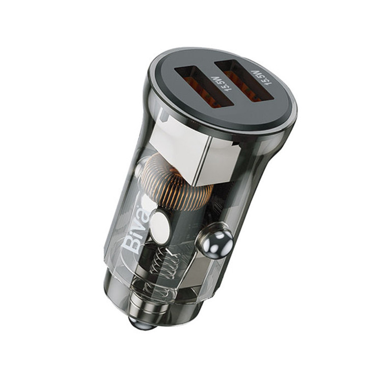 از معضلات هر سفری تمام شدن شارژ تلفن همراه، هدفون و ... است. شرکت های مختلف در زمینه تولید لوازم جانبی برای این مشکل راه حل خوبی پیش پای شما گذاشته اند. برای این منظور کمپانی بیوا که از آن دسته کمپانی های خوش نام است، شارژر فندکی 15 وات بیوا مدل CC-08 را طراحی و به بازار عرضه کرده است. لذا داشتن شارژر فندکی از ملزومات مسافرت محسوب می شود. چه بسا که اگر شارژر فندکی با تعداد پورت های مناسب داشته باشید، دیگر نگران خالی شدن باتری تلفن همراه خود نخواهید بود. شارژر فندکی 15 وات بیوا مدل CC-08 دارای دو پورت خروجی USB است که می توانید به صورت تکی و یا همزمان از این پورت ها استفاده کنید. درواقع این محصول به شما امکان می دهد بتوانید به صورت همزمان 2 دستگاه را شارژ کنید. مشخصات فنی این محصول به شرح زیر است: USB-A 1: 5V-3.1A USB-A 2: 5V-3.1A این محصول از پلاستیک مقاوم, PC و آلیاژ آلومینیوم ساخته شده که مقاومت بسیار بالایی دارد. بدنه این محصول شفاف است و زیبایی قابل توجهی دارد. همچنین حداکثر توان خروجی درگاه های USB-A 1 و USB-A 2 برابر با 15 وات بوده و در صورت استفاده همزمان از دو پورت، این توان بین دو پورت تقسیم می شود.