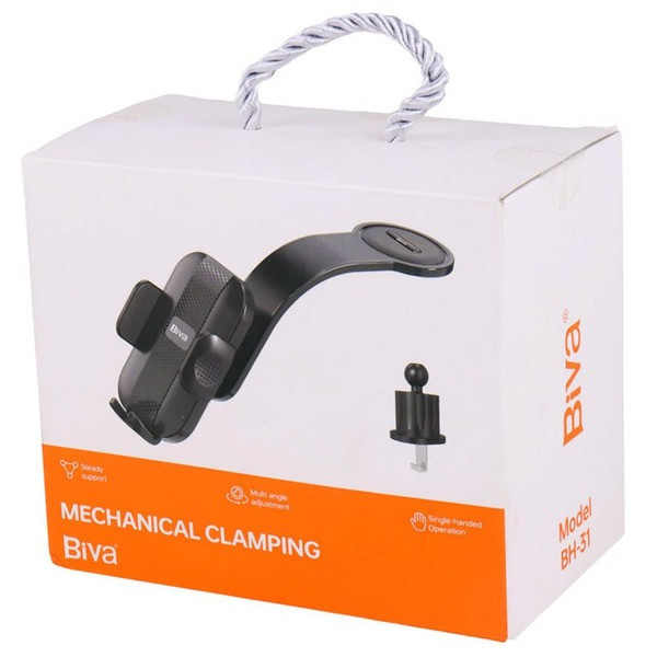 این هلدر نگهدارنده بیوا دارای پایه مکنده جهت اتصال روی سطوح صاف مانند داشبورد میباشد . در بسته این کالا یک پایه جهت اتصال به دریچه کولر خودرو وجود دارد که ساخته شده از پلاستیک مقاوم در برابر آسیب های احتمالی، دارای گیره های قوی برای نگهداری موبایل و امکان چرخش 360 درجه جهت دسترسی آسان به گوشی موبایل و نگهداری در زاویه دلخواه می باشد.